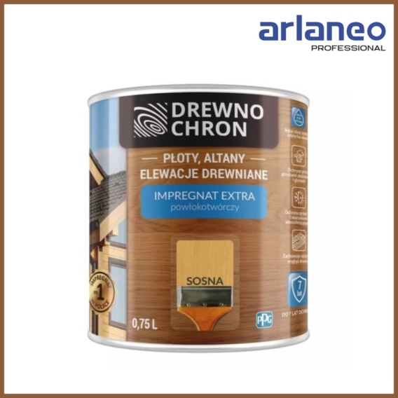 Drewnochron Impregnat Powłokotwórczy Express w kolorze Sosna to niezawodny środek ochronno-dekoracyjny do drewna stosowanego na zewnątrz. Preparat tworzy trwałą, odporną na warunki atmosferyczne powłokę, która chroni drewno przed wodą, promieniowaniem UV oraz mikroorganizmami.