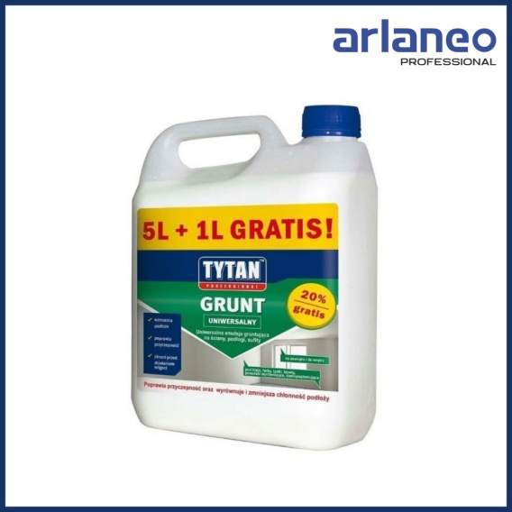 Grunt TYTAN 6L to wysokiej jakości uniwersalna emulsja gruntująca, przeznaczona do wzmacniania i przygotowania powierzchni chłonnych oraz porowatych przed dalszymi pracami budowlanymi i wykończeniowymi. Może być także dodawana do zapraw klejowych, zwiększając ich elastyczność i zapobiegając pękaniu.