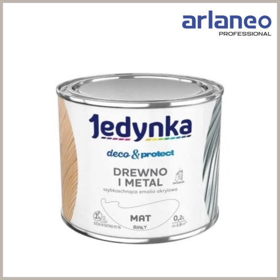 Jedynka Deco&Protect Drewno i Metal to szybkoschnąca emalia akrylowa o łagodnym zapachu, która zapewnia dekoracyjno-ochronne wykończenie powierzchni. Produkt jest dedykowany do malowania zarówno wewnętrznych, jak i zewnętrznych powierzchni drewnianych, drewnopochodnych, zabezpieczonych antykorozyjnie elementów metalowych oraz tynków wewnętrznych (np. lamperii).
