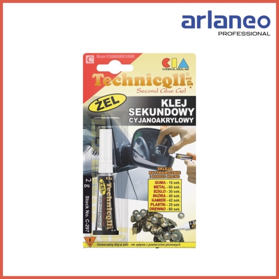 Klej sekundowy żel 2g Technicqll to jednoskładnikowy, bezbarwny klej na bazie cyjanoakrylanu etylu o wysokich parametrach technicznych. Charakteryzuje się konsystencją żelu o dużej lepkości, co zapobiega spływaniu z pionowych powierzchni i wchłanianiu przez materiały porowate.