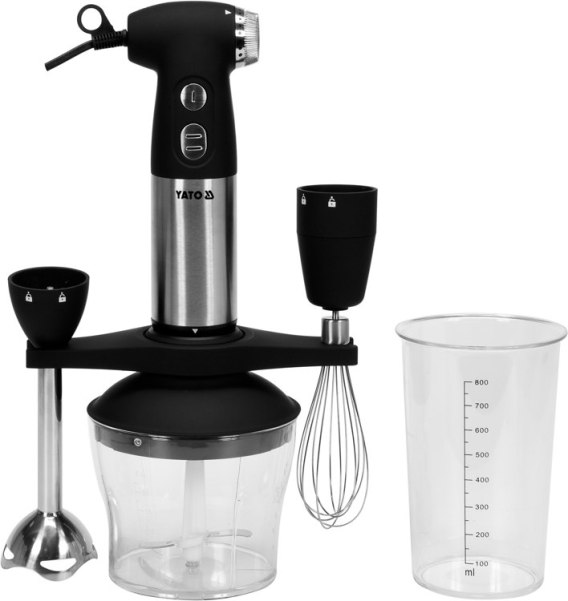Bledner ręczny marki YATO do przyrządzania zup-kremów, sosów i koktajli, a także do siekania mięsa, szatkowania warzyw czy ubijania piany. Idealnie nadaje się zarówno do miękkich, jak i twardych artykułów spożywczych.