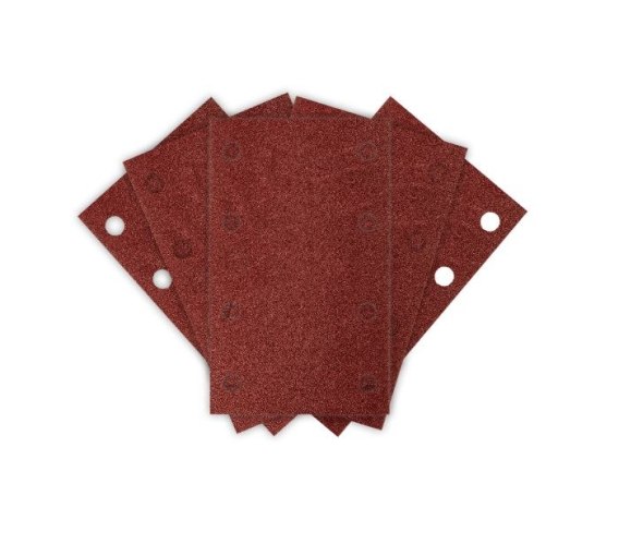 Papiery ścierne na rzep, prostokąt 80 x 130 mm, P80, 5 sztuk, z 8 otworami do 04-623, 54-050 NEO TOOLS to akcesorium przeznaczone do precyzyjnego szlifowania drewna, metalu, tworzywa sztucznego i płyt kartonowo-gipsowych. Dzięki wymiarom 130 x 80 mm oraz 8 otworom zapewnia efektywne odprowadzanie pyłu, co poprawia komfort pracy i wydłuża żywotność papieru. System mocowania na rzep umożliwia szybkie oraz wygodne zamocowanie na dedykowanej szlifierce oscylacyjnej 04-623 NEO TOOLS.