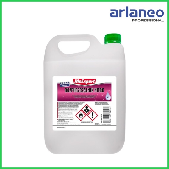 Rozpuszczalnik Nitro 5L od Mc Expert to uniwersalny preparat: ✔ do rozcieńczania farb i lakierów nitro, ✔ idealny do czyszczenia pędzli, narzędzi malarskich i warsztatowych.