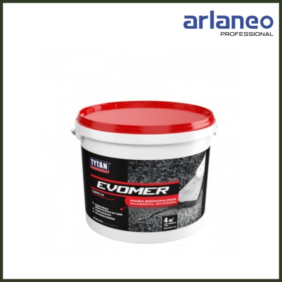 Tytan Evomer to specjalistyczna masa szpachlowa polimerowo-bitumiczna przeznaczona do szybkiego i skutecznego szpachlowania pęknięć i ubytków w asfaltowych pokryciach dachowych. Produkt tworzy zwarte, trwale elastoplastyczne wypełnienia, które mostkują rysy do 2 mm i zachowują elastyczność nawet w bardzo niskich temperaturach. Masa doskonale przylega do podłoży, jest odporna na warunki atmosferyczne oraz promieniowanie UV. Dodatkowo, dzięki dobrym właściwościom klejącym, nadaje się do podklejania płyt termoizolacyjnych.
