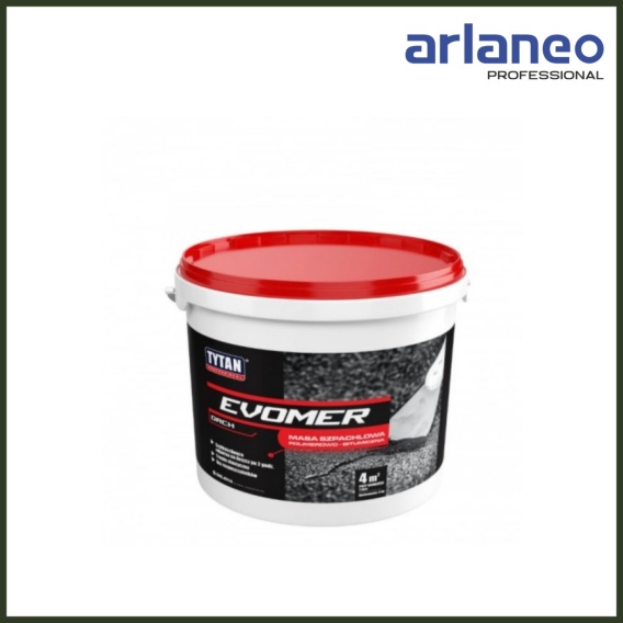 Tytan Evomer to profesjonalna masa szpachlowa polimerowo-bitumiczna, przeznaczona do skutecznego wypełniania pęknięć i ubytków w asfaltowych pokryciach dachowych. Produkt tworzy zwarte i trwałe, elastoplastyczne wypełnienia, które mostkują rysy do 2 mm i zachowują elastyczność nawet w niskich temperaturach. Dzięki znakomitej przyczepności oraz odporności na promieniowanie UV i warunki atmosferyczne, masa jest idealna do trwałych napraw dachów. Można ją także stosować do podklejania płyt termoizolacyjnych.