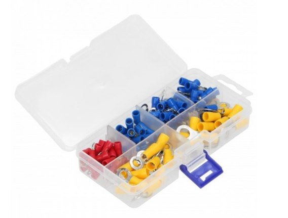 Zestaw końcówek izolowanych, oczkowych do zaciskania na końcach przewodów typu linka.Pozwala na wykonanie estetycznego i bezpiecznego zakończenia przewodu oczkiem, umożliwiającym połączenie śrubowe gwintowane. Produkt wykonany został z miedzi pokrytej warstwą cyny. Zawiera 120 elementów - 1mm2 x M4: 25 szt. 2,5mm2 x M4: 20 szt. 2,5mm2 x M5: 20 szt. 2,5mm2 x M6: 20 szt. 6mm2 x M6: 20 szt. 6mm2 x M8: 20 szt.