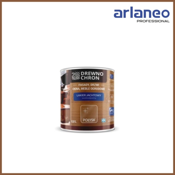 Drewnochron Lakier Jachtowy Połysk 0.8L to specjalistyczny lakier ochronno-dekoracyjny do drewna, przeznaczony zarówno do zastosowań wewnętrznych, jak i zewnętrznych. Charakteryzuje się wysokim połyskiem, który podkreśla naturalne piękno drewna, nadając mu efekt eleganckiego wykończenia.