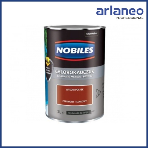 Nobiles Emalia chlorokauczukowa czerwona tlenkowa to farba ochronno-dekoracyjna przeznaczona do malowania powierzchni stalowych, żeliwnych i betonowych na zewnątrz budynków. Powłoka charakteryzuje się wysoką elastycznością, dzięki czemu dobrze znosi odkształcenia i zmiany temperatury, a także odpornością na działanie warunków atmosferycznych oraz uszkodzenia mechaniczne.