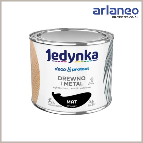 • JEDYNKA DECO&PROTECT DREWNO I METAL MAT CZARNY 0,2L JEDYNKA