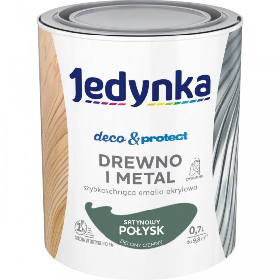 JEDYNKA DECO&PROTECT DREWNO I METAL SATYNA ZIELONY CIEM 0,7L JEDYNKA