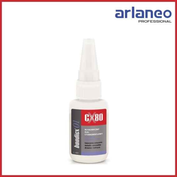 CX-80 BONDICX 01 to profesjonalny, szybko utwardzający się klej cyjanoakrylowy ogólnego przeznaczenia. Dzięki niskiej lepkości idealnie sprawdza się przy klejeniu dokładnym i precyzyjnym, w tym także do materiałów trudnych lub porowatych.