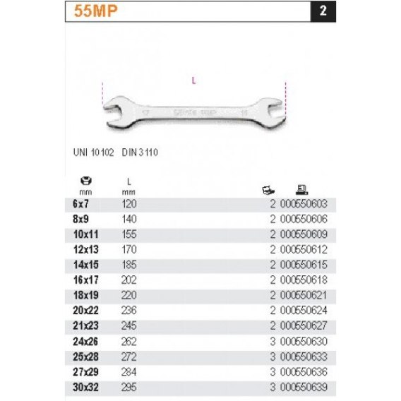 KLUCZ PŁASKI DWUSTRONNY, POLEROWANY, MODEL 55MP, 6X7MM