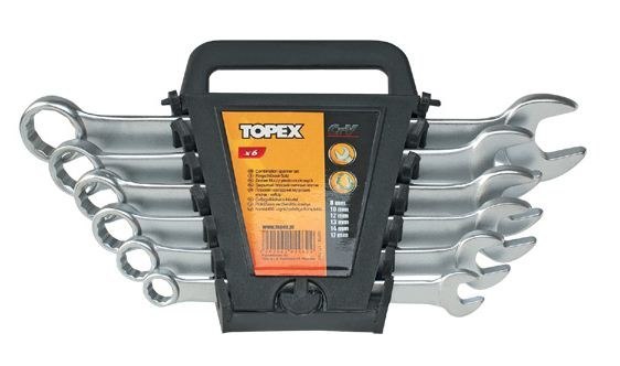 KOMPLET KLUCZY PŁASKO-OCZKOWYCH 6-SZTUKOWY 8-17MM PREMIUM TOPEX