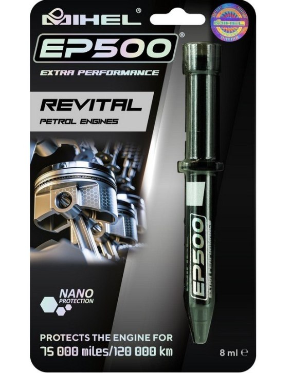Mihel EP 500 - preparat o wysokiej skuteczności działania, przeznaczony do ochrony i rewitalizacji silników benzynowych. Innowacyjna formuła nano cząsteczek o wysokiej zdolności powierzchniowo czynnej tworzy na strukturze metalu wytrzymałą stabilną powłokę ochronną ceramiczno-metalową o niskich współczynnikach oporu i doskonałych właściwościach przewodności cieplnej. Powoduje znaczne obniżenie tarcia oraz stałą ochronę podzespołów, praktycznie eliminując proces ich zużycia. Regularne stosowanie pozwala znacząco wydłużyć żywotność silnika.