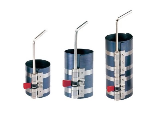 Klucz do regulacji umożliwia ściśnięcie pierścienia i wsunięcie tłoka w cylinder, a blokada zapobiega ich rozszerzaniu. Wysokość 100 mm, średnica 57-125 mm