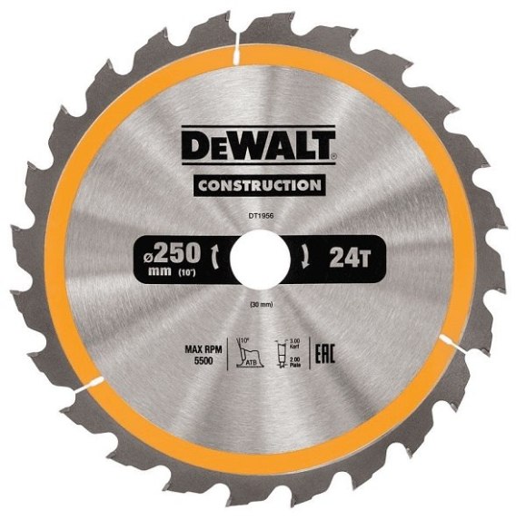 PIŁA TARCZOWA DO DREWNA 250/30MM, 24 ZĘBY DEWALT
