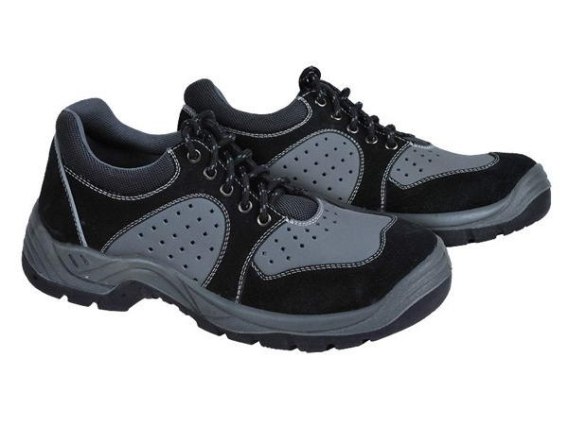 Buty bezpieczne UNIREIS- wykonane ze skóry bydlęcej, przed kostkę z otworami, które zwiększają przewiewność obuwia - welur w kolorze czarnym łączony z szarą skórą typu nubuck - podeszwa wykonana z podwójnego poliuretanu, olejoodporna, antypoślizgowa, absorpcja uderzeń pod piętą - stalowy podnosek wytrzymały na uderzenia z energią 200 J oraz zagięcia do 15 kN - typ SB, spełniają wymagania normy EN 345-1