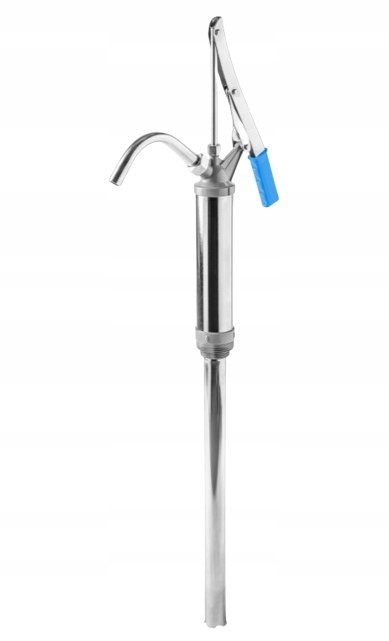 Profesjonalna pompa ręczna przeznaczona do pobierania substancji płynnych przechowywanych w beczkach.