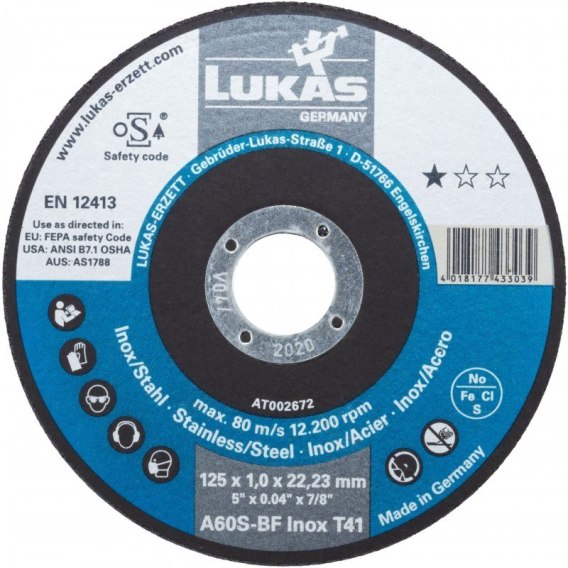 • TARCZA PŁASKA T1A 100*1.0*16.00 A60S-BF INOX LUKAS