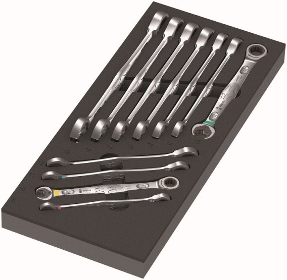 Tool Rebel wyposażona w 11 kluczy płasko-oczkowych z grzechotką Wera 6000 Joker.