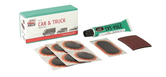 Zestaw naprawczy umożliwia wykonanie samodzielnej naprawy dętek samochodów osobowych i dostawczych w każdych warunkach.