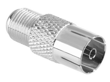 Przejściówka antenowa z wtyku F na gniazdo antenowe IEC do gniazda TV lub radia.