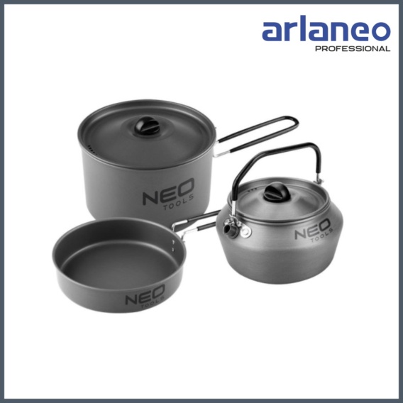 🍳 Zestaw naczyń turystycznych 3w1 NEO TOOLS - czajnik, garnek, patelnia