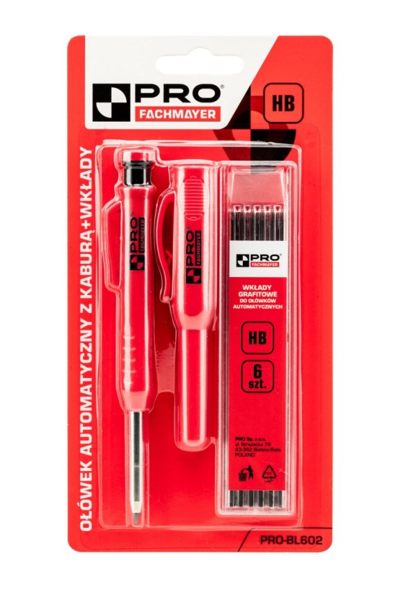 Wyposażony dodatkowo w 6 zapasowych wkładów z wysokiej jakości grafitu, umożliwiających zaznaczanie na chropowatych i gładkich powierzchniach