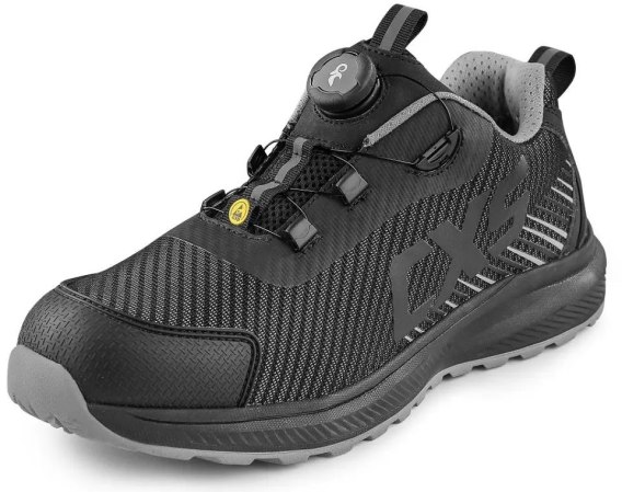Półbut roboczy ESD z oddychającą cholewką, kompozytowym noskiem i tekstylną antypenetrującą wkładką, elementy odblaskowe.