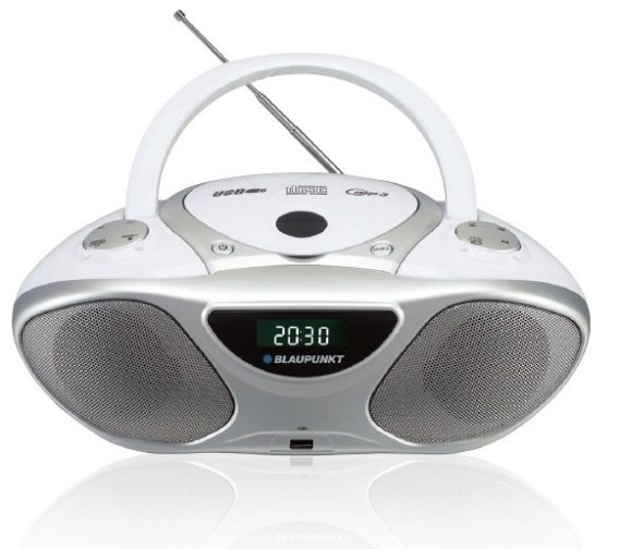 Boombox BB14BK/WH marki Blaupunkt to model, który wyposażono w odtwarzacz CD z odczytem plików MP3.