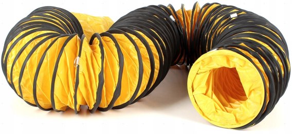 pierwsze 2 metry (czarna część) wykonane są z materiału o wysokiej wytrzymałości, odporność termiczna od -30 °C do +150 °C druga część przewodu (żółta część) odporna jest na temperatury od -30 °C do +85 °C rozprowadza ciepłe powietrze