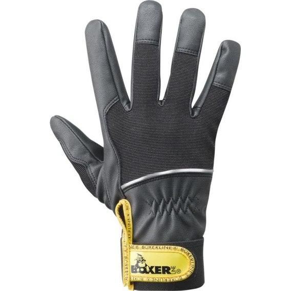 Rękawice techniczne dla mechaników z materiału syntetycznego - Wnętrze dłoni z dzianiny poliestrowej impregnowanej poliuretanem - Wierzch oddychający, poliestrowoanowy - Wstawki odblaskowe na wierzchu dłoni, aby zwiększyc widzialnośc bierną - Dziany mankiet z rzepem pozwalającym na regulację -Wewnętrzny elastyczny mankiet -CE