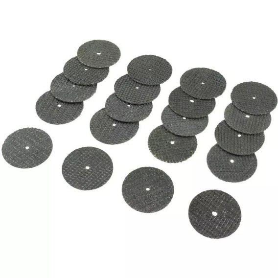 Zestaw 20 elementów do miniszlifierki, szlifierki ręcznej precyzyjnej. Na zestaw składa się 20 tarcz korundowych. Przeznaczone są do precyzyjnego cięcia metalu na niewielkich obiektach lub powierzchniach. Umożliwia to stosunkowo niewielka średnica - 32mm i grubości 2mm.