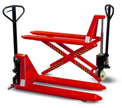 Wózek nożycowy to połączenie cech użytkowych wózka paletowego i podnośnikowego. Wózek posiada możliwość jazdy przy wysokości wideł do 360 mm, powyżej jest automatycznie i stabilnie podpierany, a kółka sterujące odciążane.Możliwa jest także wersja wózka z możliwością jazdy powyżej 360 mm. Zamiast podpór stabilizacyjnych, zastosowano rolki umożliwiające jazdę przy podniesionych widłach powyzej 360 mm