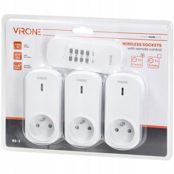 ZESTAW BEZPRZEWODOWY GNIAZDO STEROWANE PILOTEM 3+1 VIRONE
