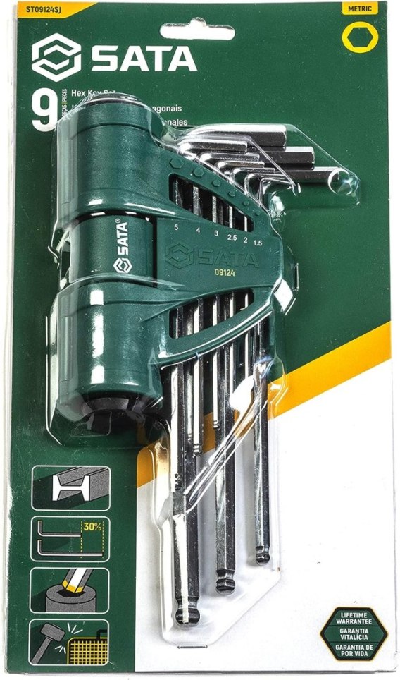 ZESTAW KLUCZY TRZPIENIOWYCH EXTRA DŁUGICH Z KULKĄ 9SZT. SATA