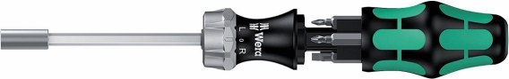 Grzechotka: drobnozębna, niewielki kąt pracy, przełącznik zmiany kierunku pracy (prawo-lewo z blokadą w środkowym położeniu), przenoszenie momentów obrotowych do 50 Nm sześciokątny trzpień z uchwytem sześciokątnym 1/4", z tulejką obrotową ze stali szlachetnej, z magnesem.