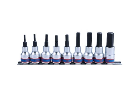 ZESTAW NASADEK Z KOŃCÓWKĄ HEX 1/2'' NA SZYNIE, 4-17MM, 9CZ. KING TONY